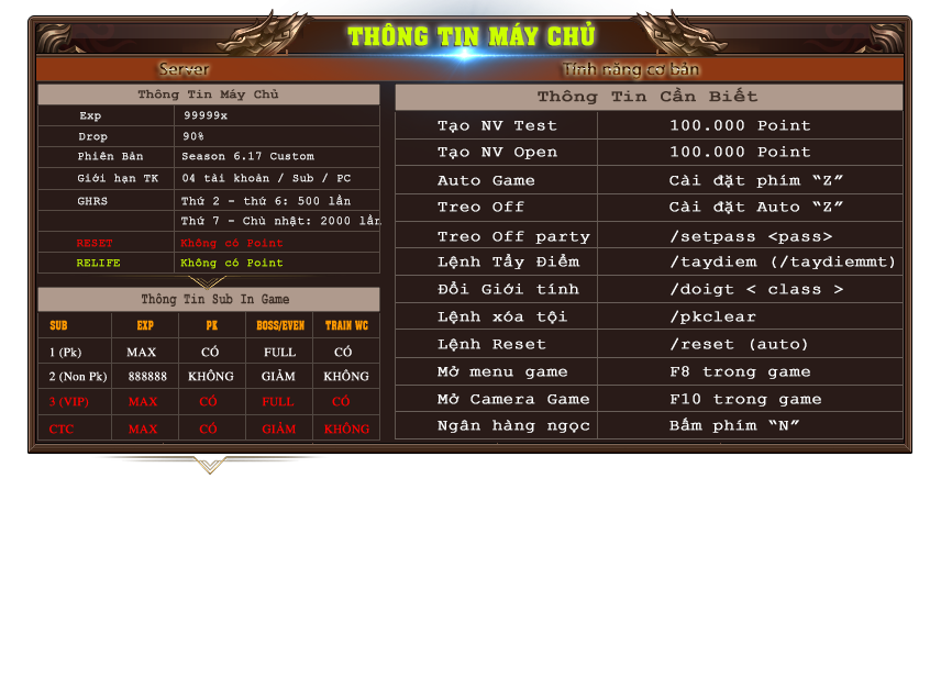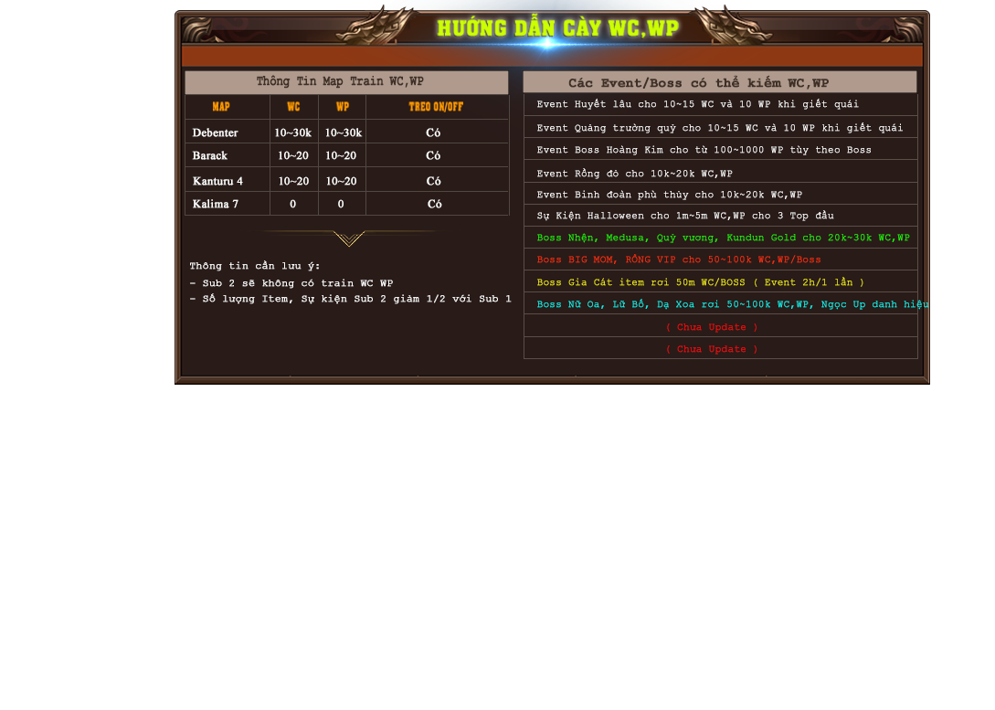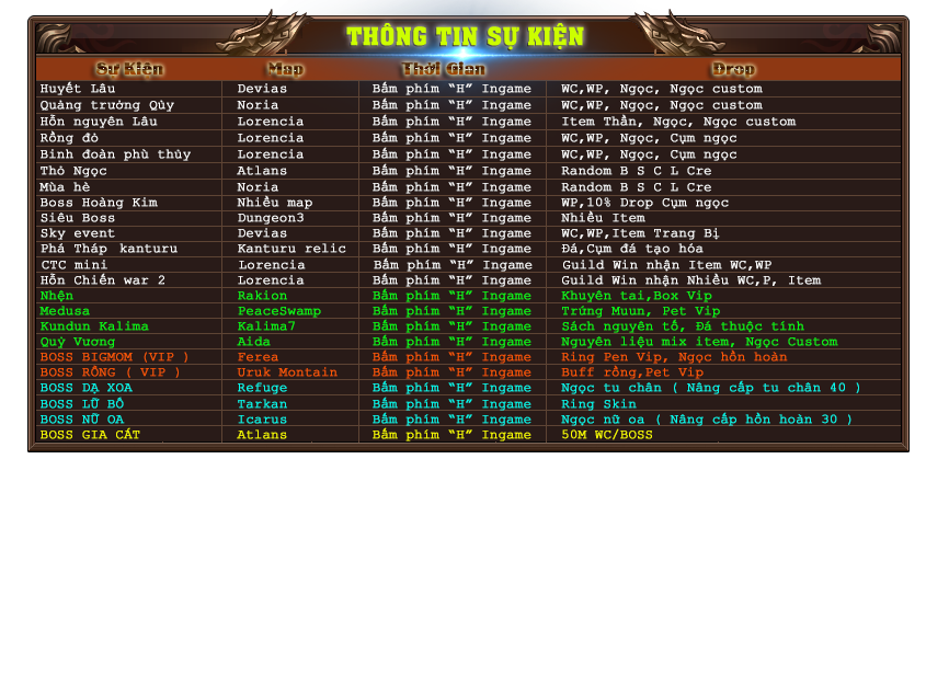 Tổng hợp thời gian các sự kiện diễn ra trong Game!